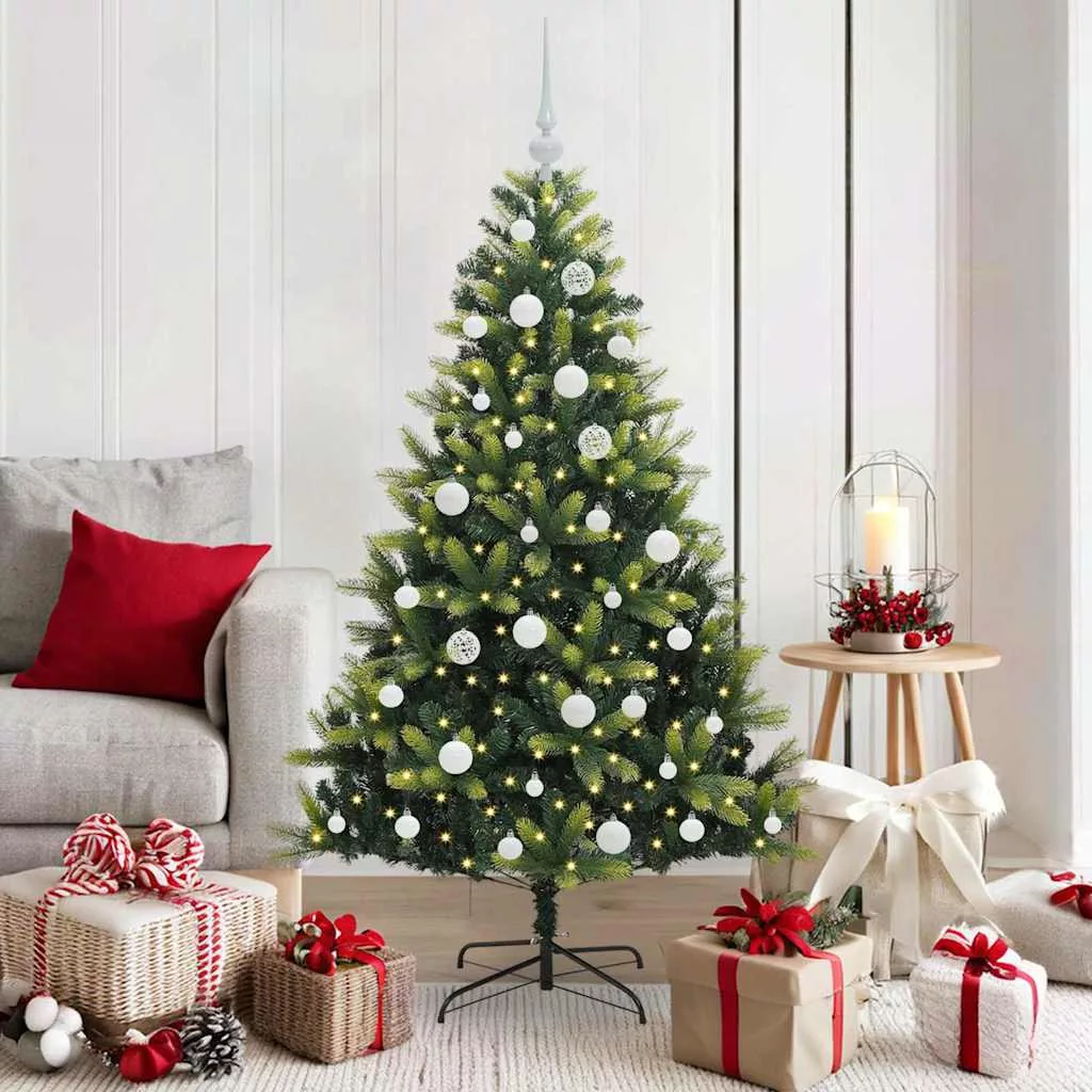 Ez a modern mű karácsonyfa tökéletes kiegészítője otthonodnak vagy bármilyen kereskedelmi helynek, hiszen hihetetlenül élethű dizájnt kínál. Minimalista és funkcionális stílusban készült, így a hagyományos karácsony esszenciáját ragadja meg. Magasan álló, buja PVC és PE ágai olyan bájt hoznak, ami passzol bármilyen belső stílushoz, legyen az klasszikus ünnepi dekoráció vagy modern minimalizmus. Minden ága könnyen formázható a hajtogatott szerkezetének köszönhetően, lehetővé téve, hogy a saját ízlésedhez és teredhez igazítsd. Anyag Kiválóság: Ez a fa minőségi PVC és PE ágakat kombóz, hogy valósághű hatást keltsen, ami hasonlít a természetes karácsonyfákra. Ezek az anyagok is a tartósságuk és alacsony karbantartási igényeik miatt lettek kiválasztva, így a fád évről évre gyönyörű marad, anélkül hogy kiszáradna vagy hullatná a tűleveleit, mint a valódi fák. Befogott LED Lámpák: A meleg fehér LED szalaglámpákkal felszerelt fa kellemes hangulatot teremt, anélkül, hogy extra díszítésekre lenne szükség. Minden lámpa tökéletesen van elhelyezve, hogy egyenletesen világítsa meg az ágat a tetejétől az aljáig, kiemelve a díszeidet és csillogást adva a dekorációdnak. Könnyű Összeszerelés: A hajtogatott szerkezet miatt ez a fa gyorsan és egyszerűen összeszerelhető. Csak nyisd ki az ágakat, állítsd be a kívánt teltséget, és rögzítsd a mellékelt fém állvánnyal. Úgy van tervezve, hogy a karácsonyi időszak után könnyedén felállíthasd és lebontsuk, így több időd marad a családdal és barátokkal való ünneplésre. Sokoldalú Dizájn: Ez a fa nemcsak a hangulatos nappalikhoz jó, hanem teraszokon és fedett kültéri helyeken is alkalmazható, így különböző környezetekhez alkalmazkodik. USB-töltésű LED lámpái modern hangulatot adnak, lehetővé téve, hogy bármilyen USB áramforrásnál kényelmesen világíthass. Karbantartás: Tartsd a fát tisztán azzal, hogy rendszeresen letakarítod és biztosítod, hogy száraz helyen tárold, amikor nem használod. További biztonság érdekében a világításhoz egy tanúsított 5V USB áramforrás szükséges, ami biztonságot ad az ünnepi szezon során. Ez a termék DC 5V-ról működik, de a tanúsított 5V-os USB-tápforrást nem tartalmazza. A magasabb feszültség túlmelegedést okozhat, ami a készülék károsodását, valamint a túlmelegedés és a tűz esetleges kockázatát okozhatja.