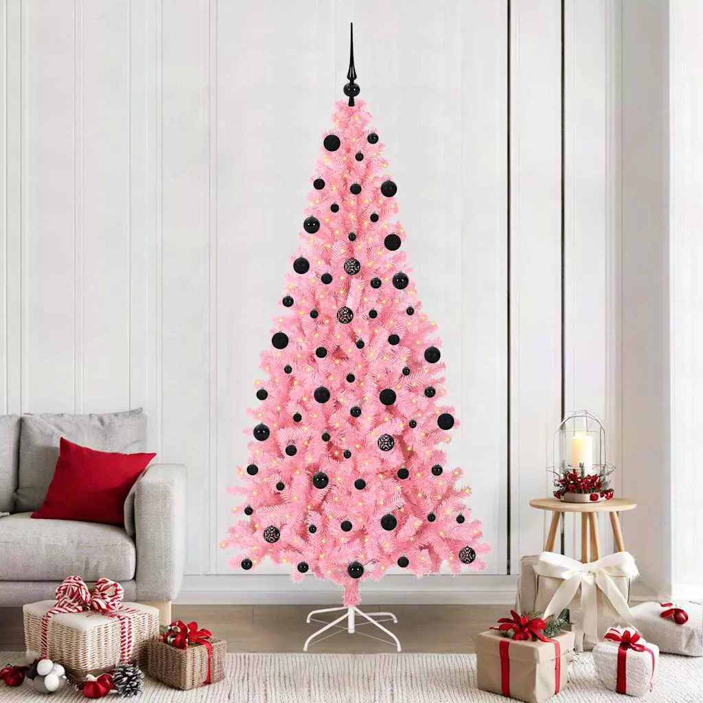 Karácsonyfa 300 LED-del állvánnyal Rózsaszín 210 cm PVC