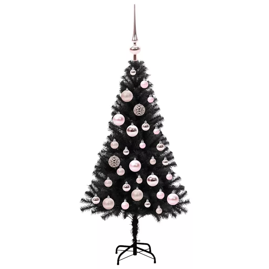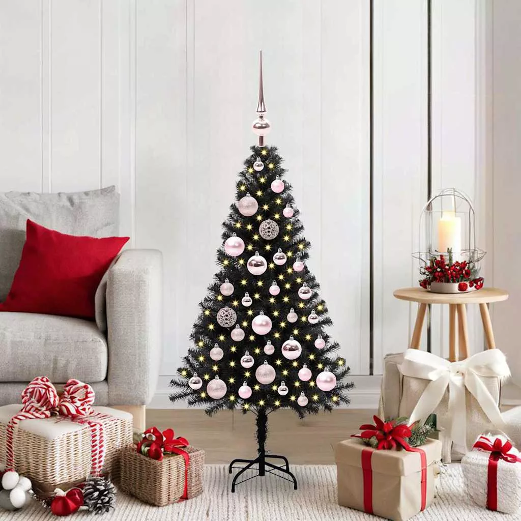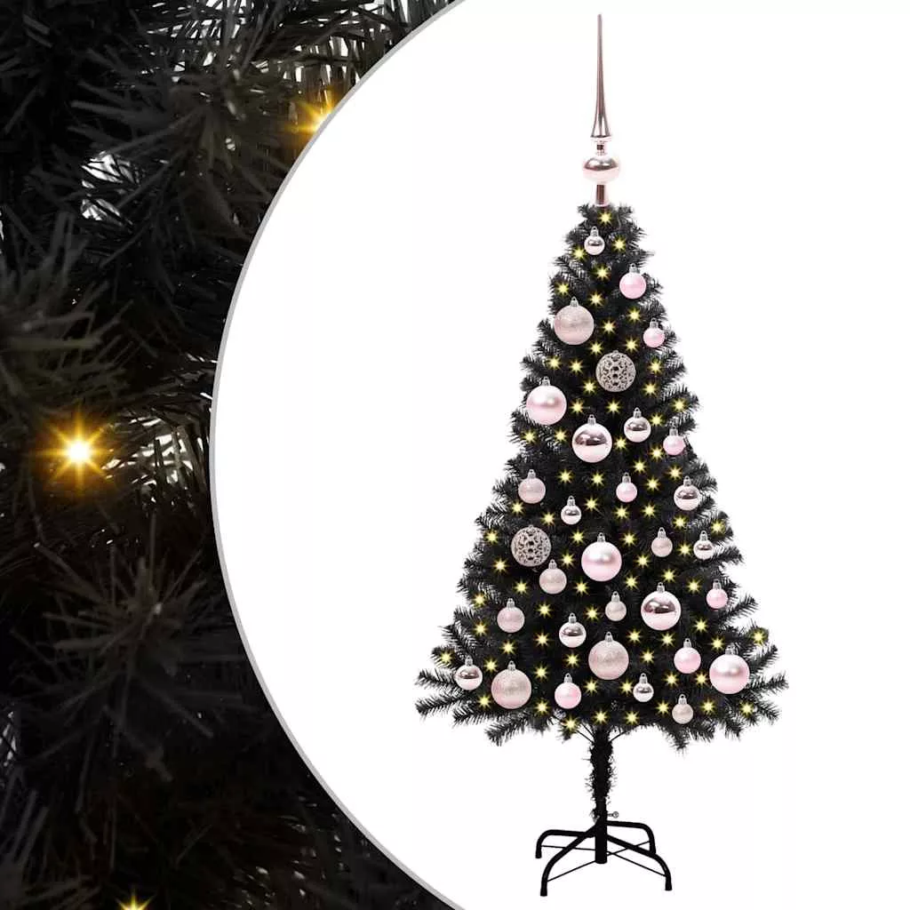 Karácsonyfa 150 LED-del állvánnyal Fekete 120 cm PVC