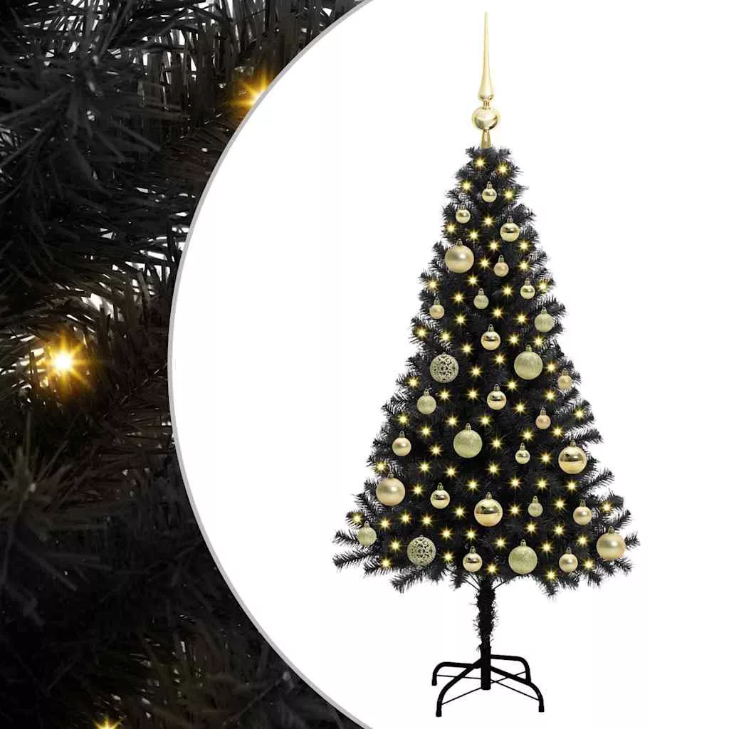 Karácsonyfa 150 LED-del állvánnyal Fekete 120 cm PVC