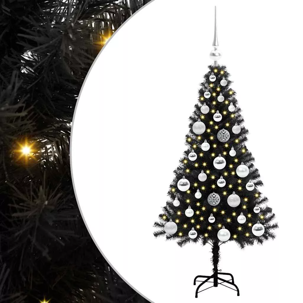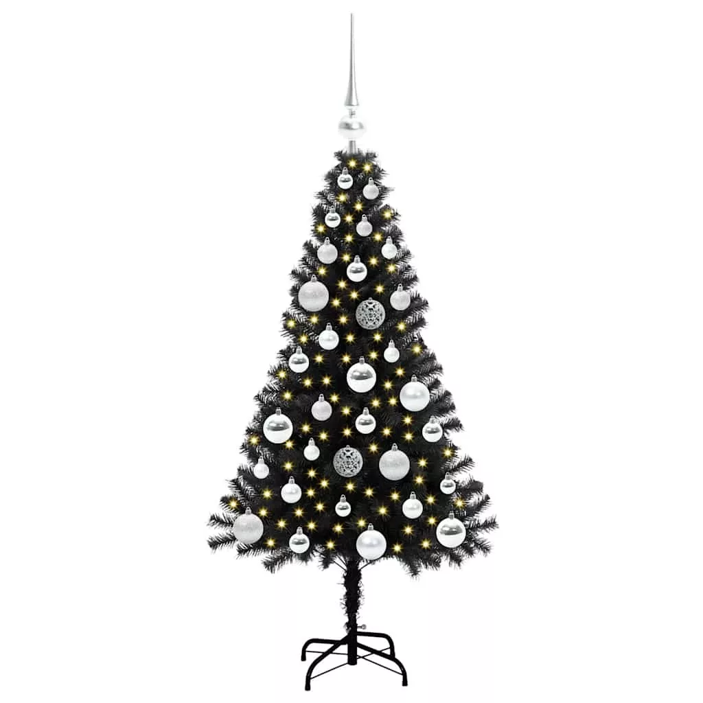 Karácsonyfa 150 LED-del állvánnyal Fekete 120 cm PVC