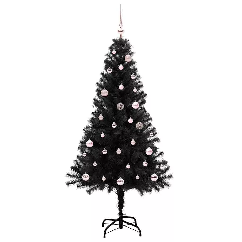 Karácsonyfa 150 LED-del állvánnyal Fekete 150 cm PVC