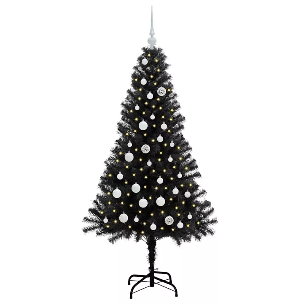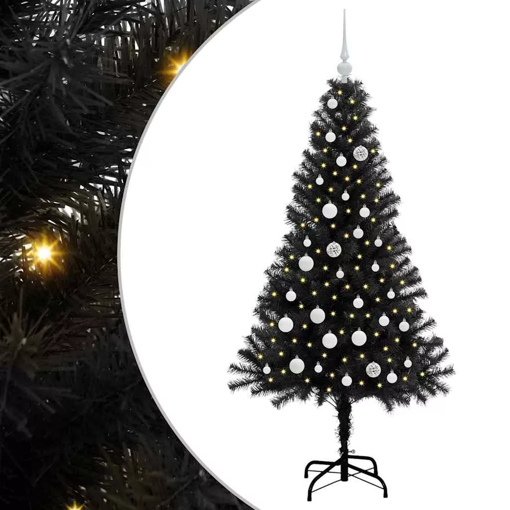 Karácsonyfa 150 LED-del állvánnyal Fekete 150 cm PVC