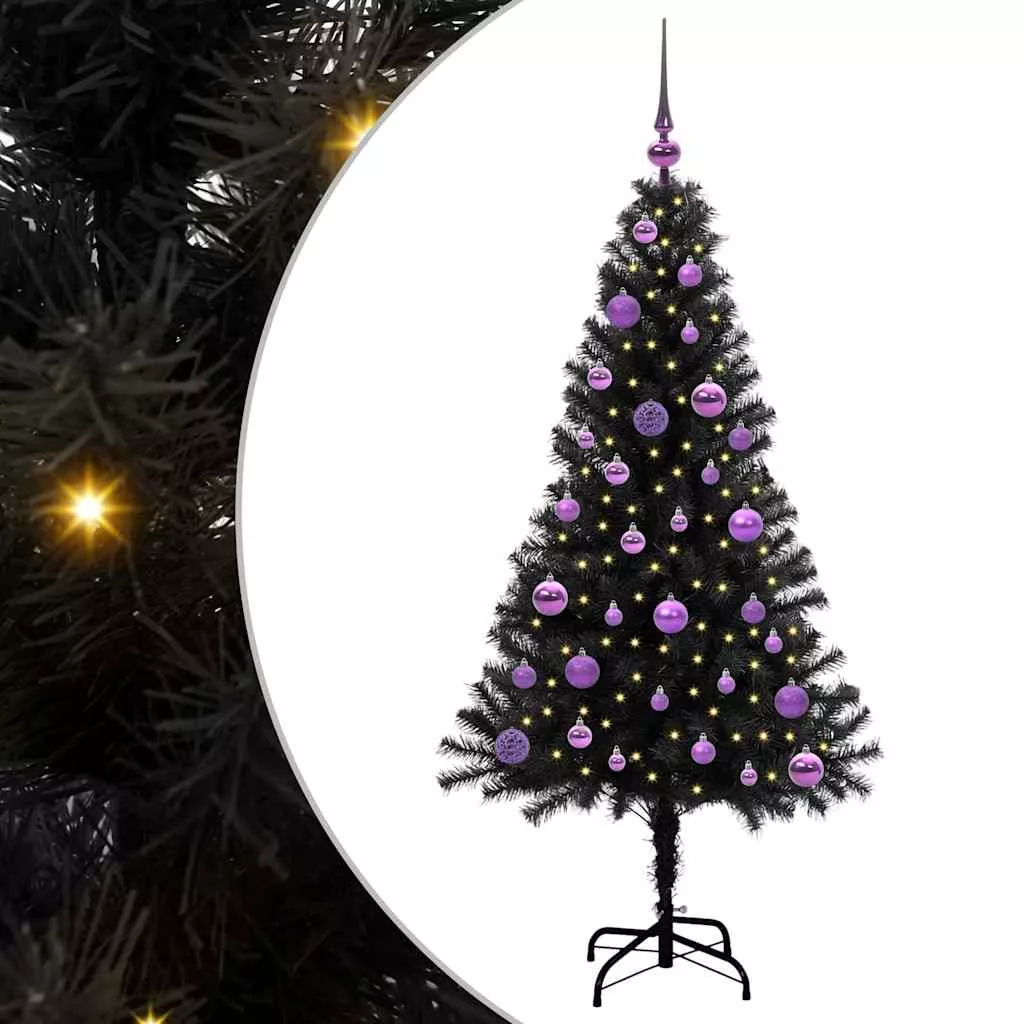 Karácsonyfa 150 LED-del állvánnyal Fekete 150 cm PVC
