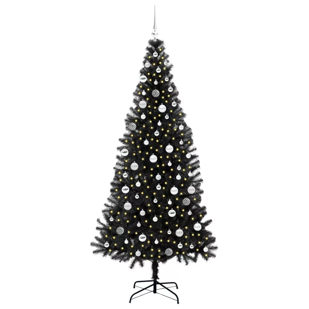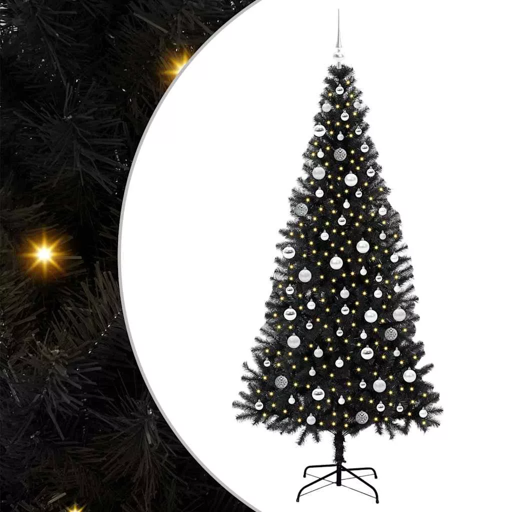 Karácsonyfa 300 LED-del állvánnyal Fekete 210 cm PVC
