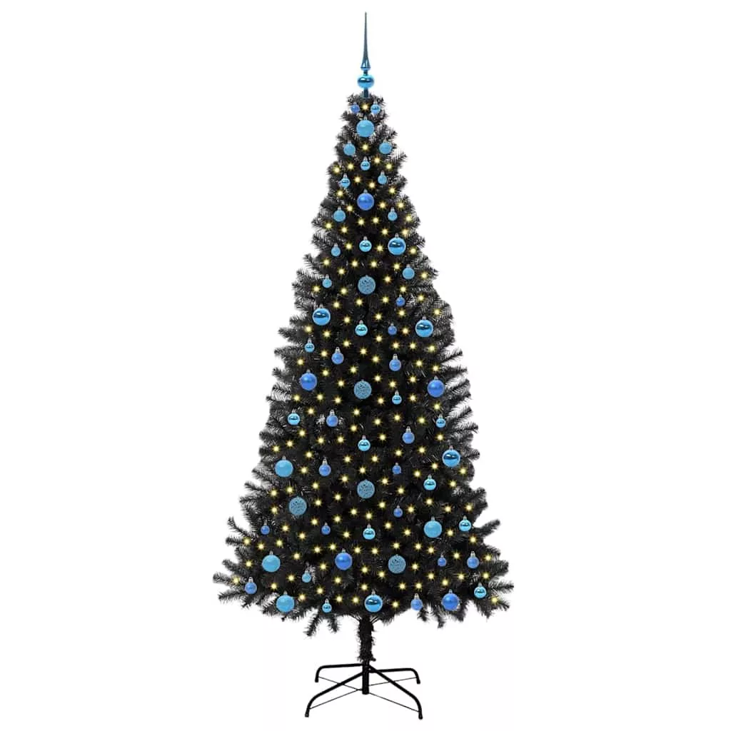 Karácsonyfa 300 LED-del állvánnyal Fekete 210 cm PVC