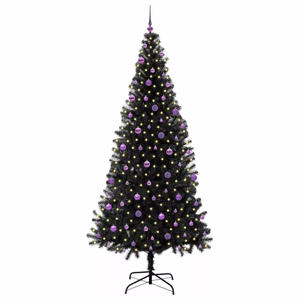 Karácsonyfa 300 LED-del állvánnyal Fekete 240 cm PVC
