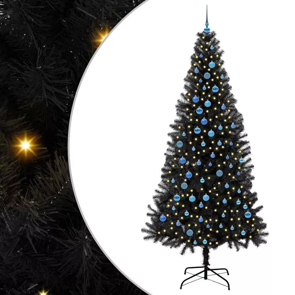 Karácsonyfa 300 LED-del állvánnyal Fekete 240 cm PVC