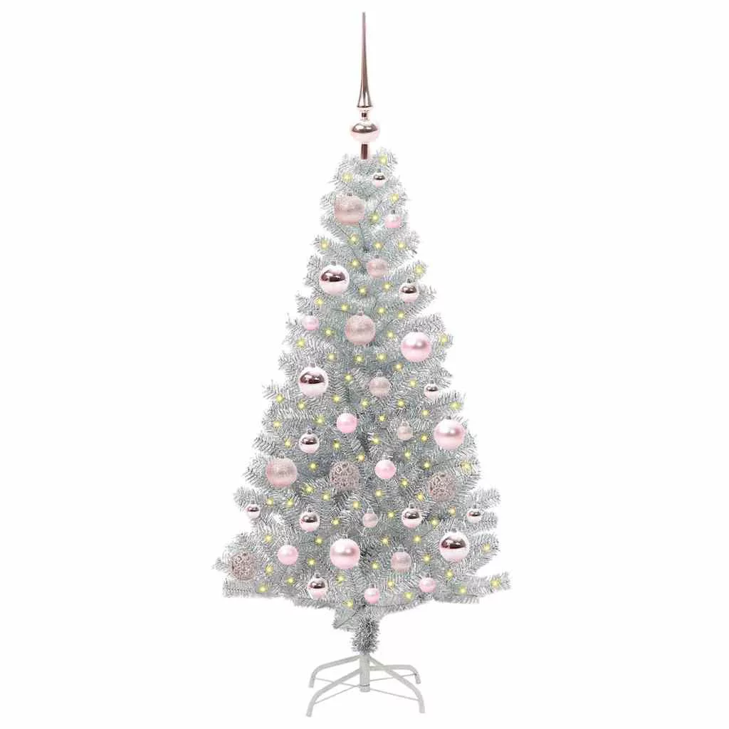 Karácsonyfa 150 LED-del állvánnyal Ezüst 120 cm PET