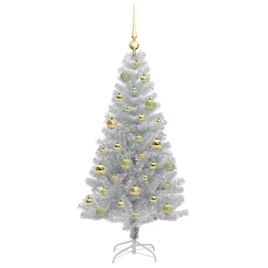 Karácsonyfa 150 LED-del állvánnyal Ezüst 120 cm PET