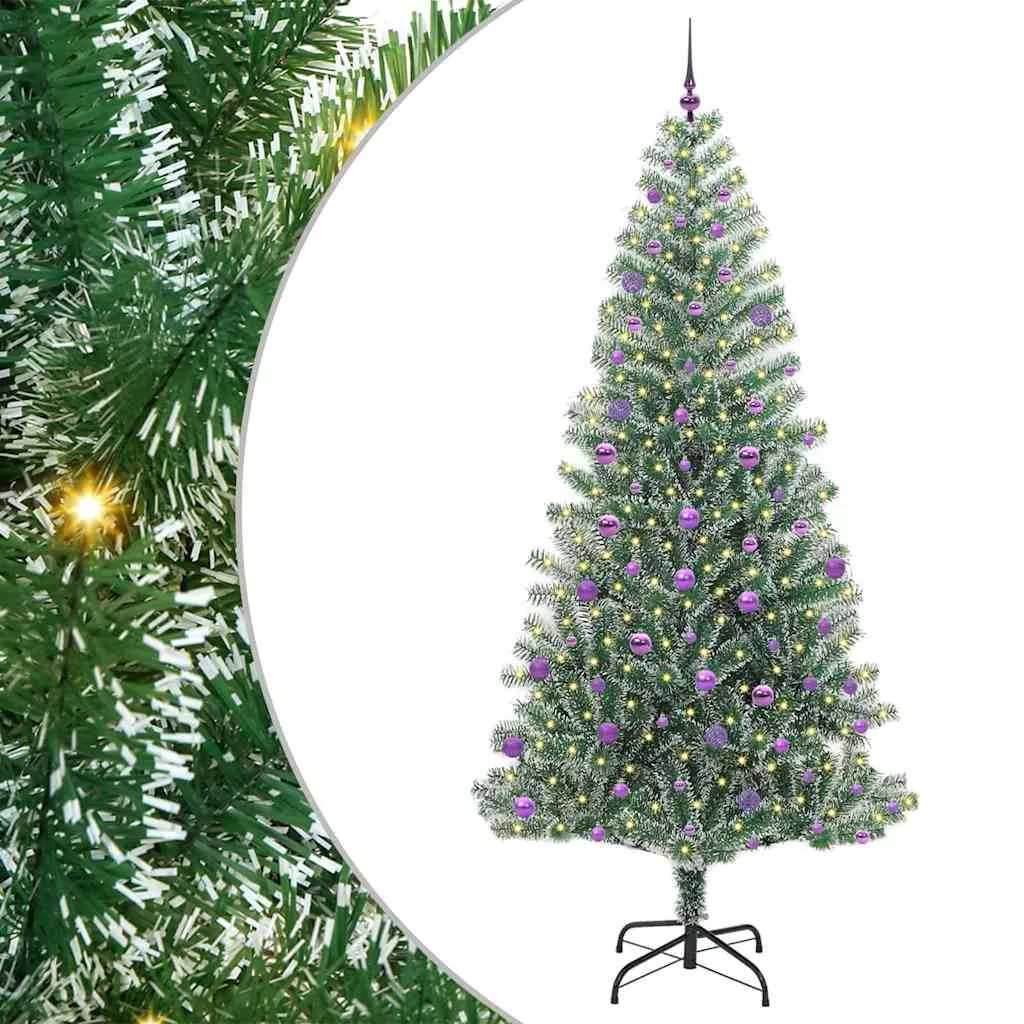 Mű karácsonyi fa hóval borítva LED fényekkel 240 cm