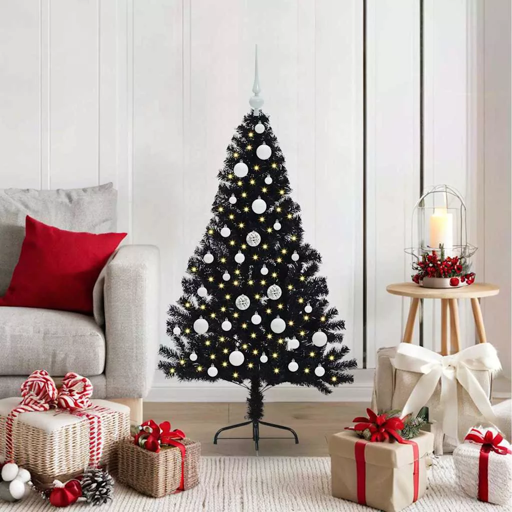 Mesterséges, előre világított karácsonyi fa Fekete 120 cm PVC