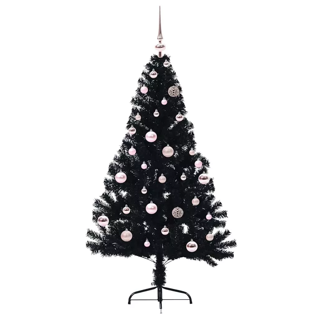 Mesterséges, előre világított karácsonyi fa Fekete 150 cm PVC