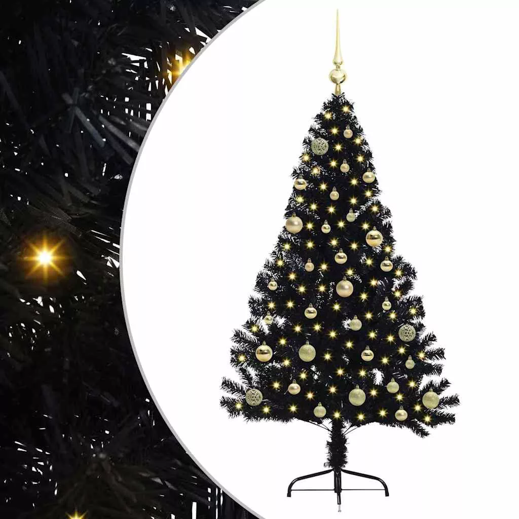 Mesterséges, előre világított karácsonyi fa Fekete 150 cm PVC