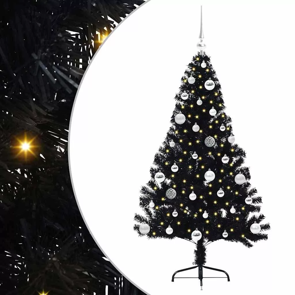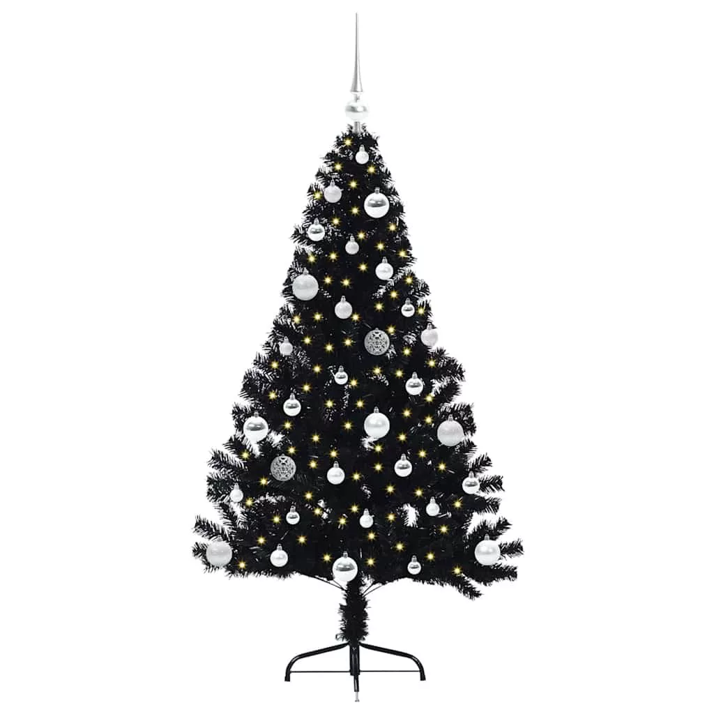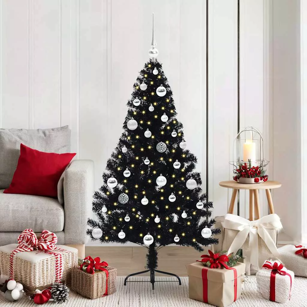 Mesterséges, előre világított karácsonyi fa Fekete 150 cm PVC
