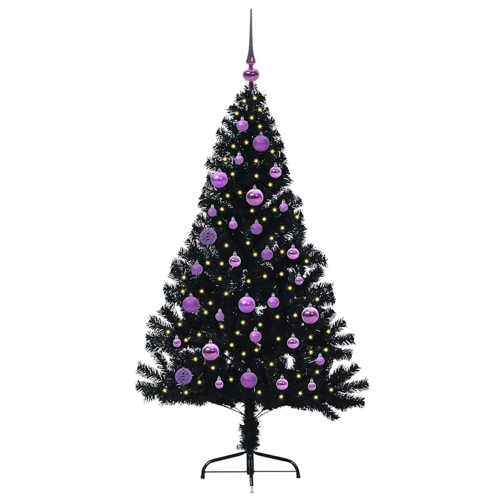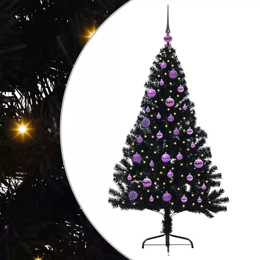 Mesterséges, előre világított karácsonyi fa Fekete 150 cm PVC