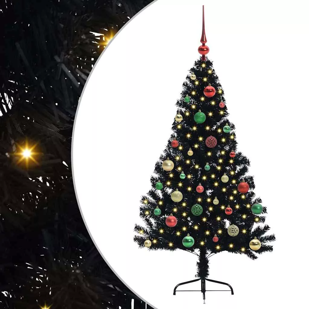Mesterséges, előre világított karácsonyi fa Fekete 150 cm PVC