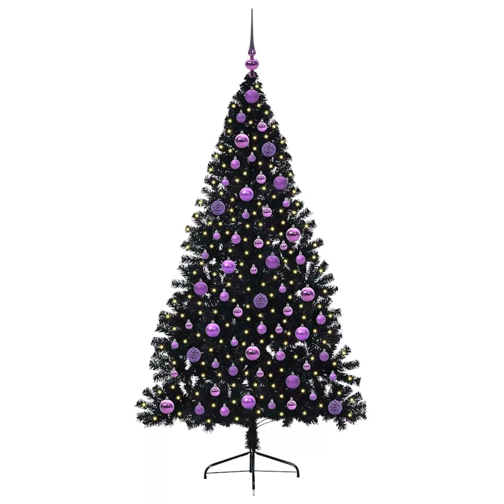 Mesterséges, előre világított karácsonyi fa Fekete 180 cm PVC