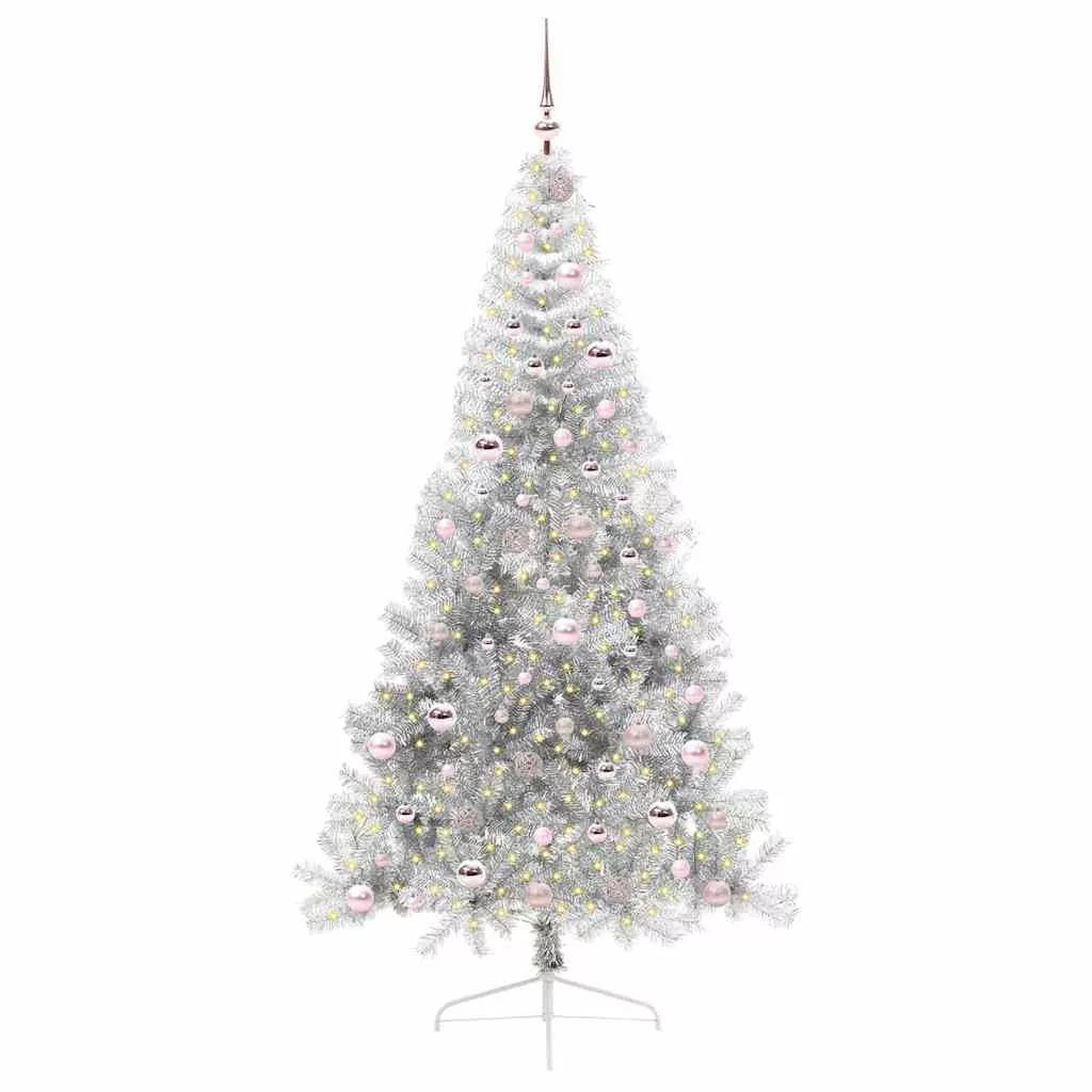 Mesterséges, előre világított karácsonyi fa Ezüst 210 cm PET