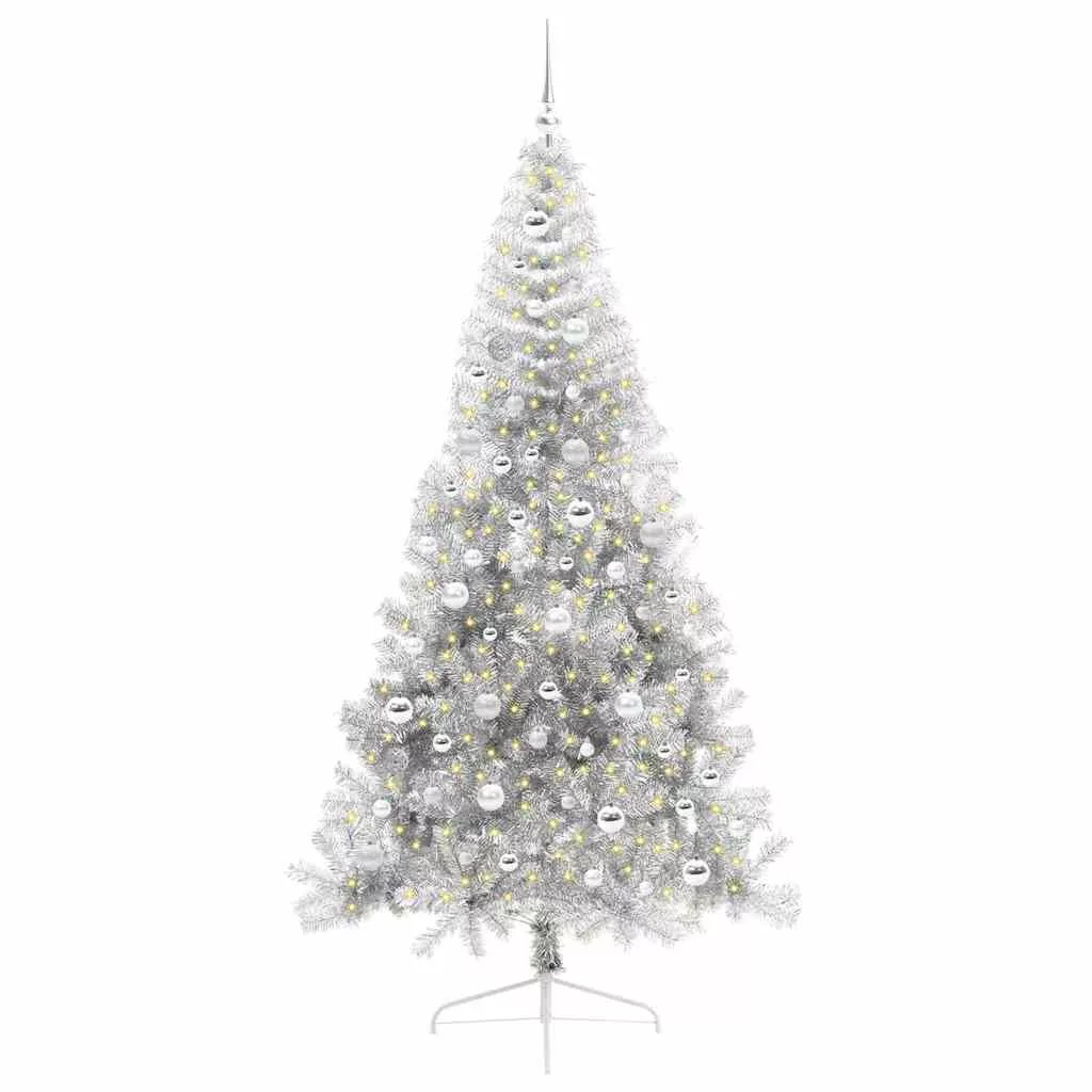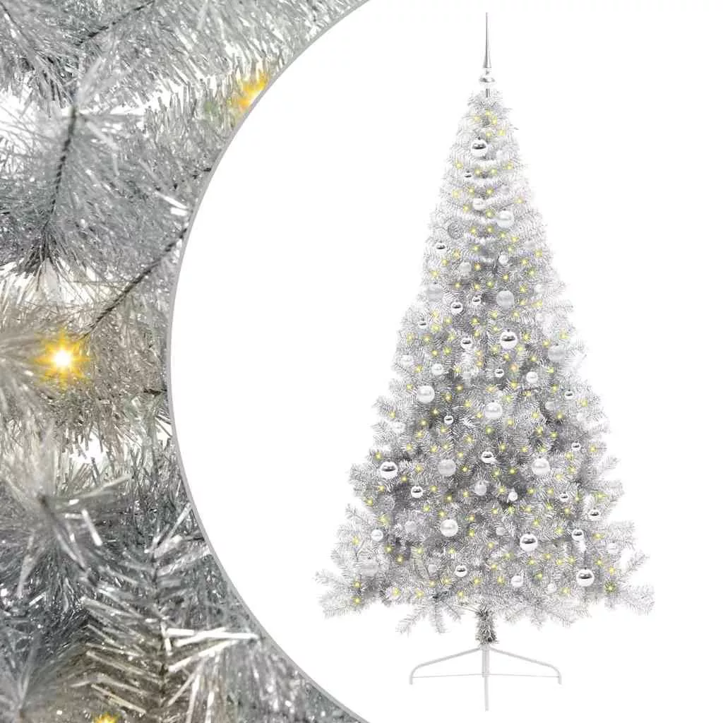 Mesterséges, előre világított karácsonyi fa Ezüst 210 cm PET