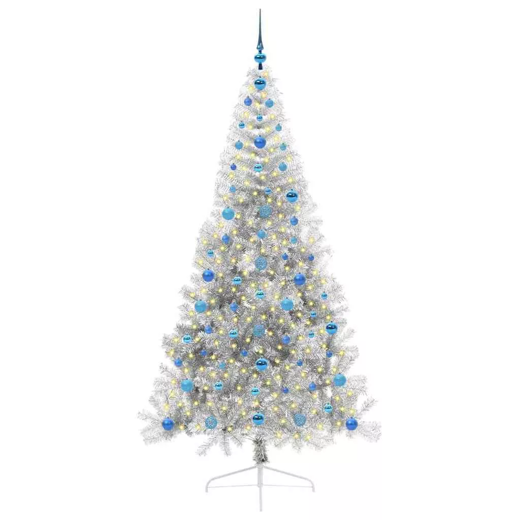 Mesterséges, előre világított karácsonyi fa Ezüst 210 cm PET