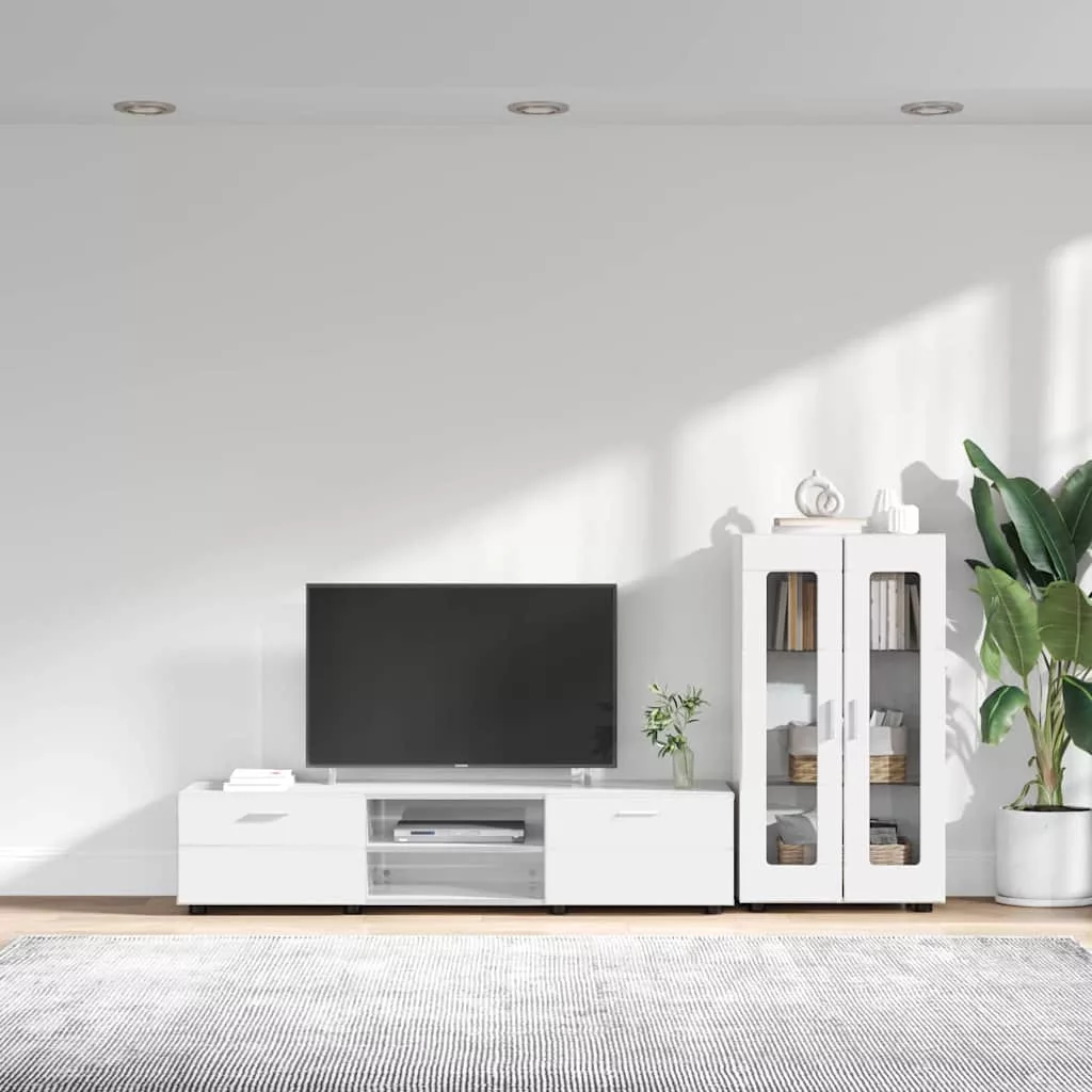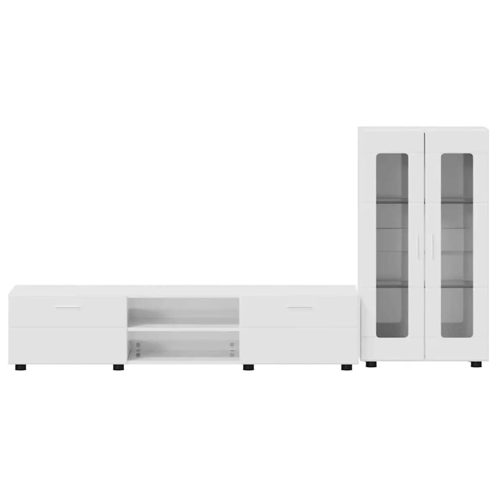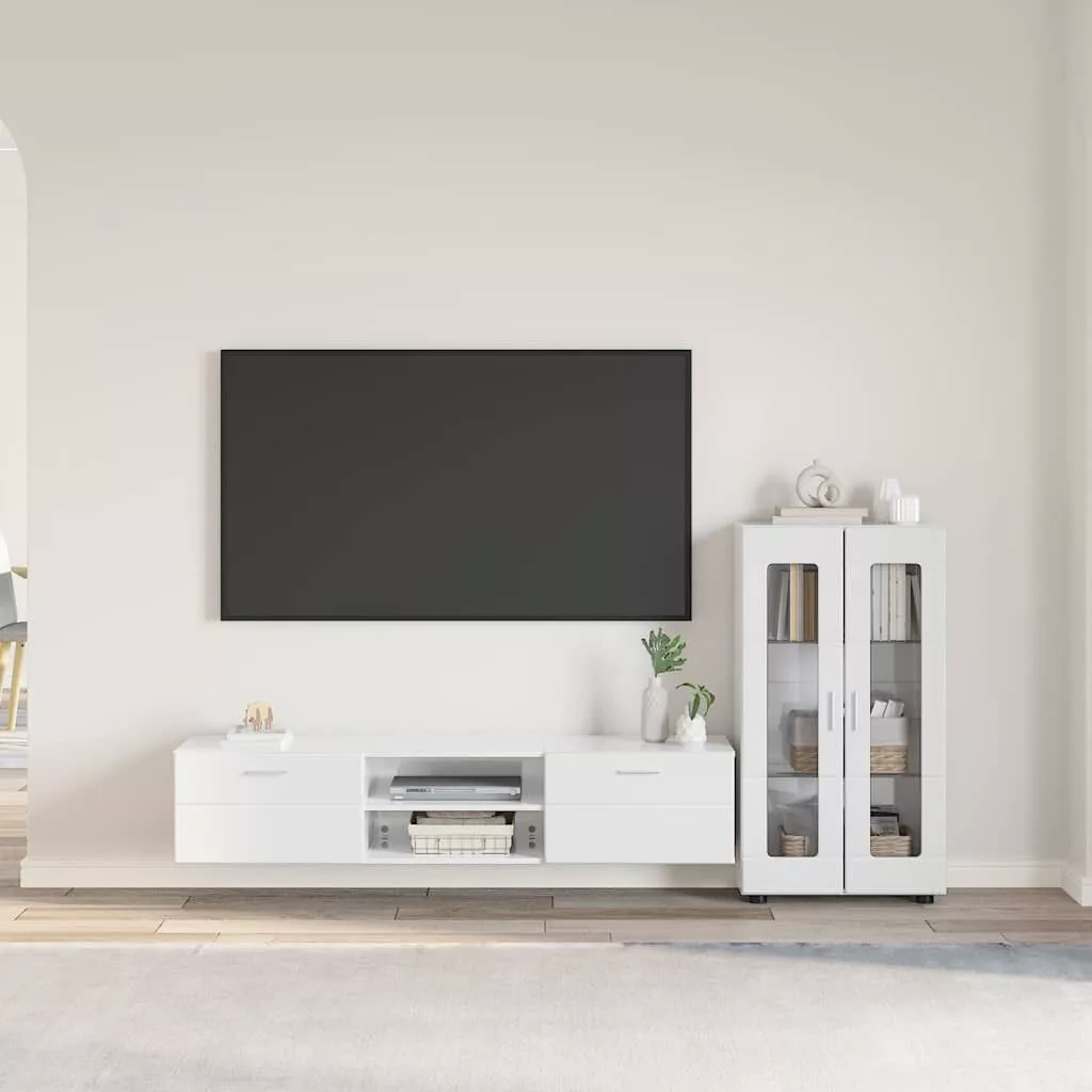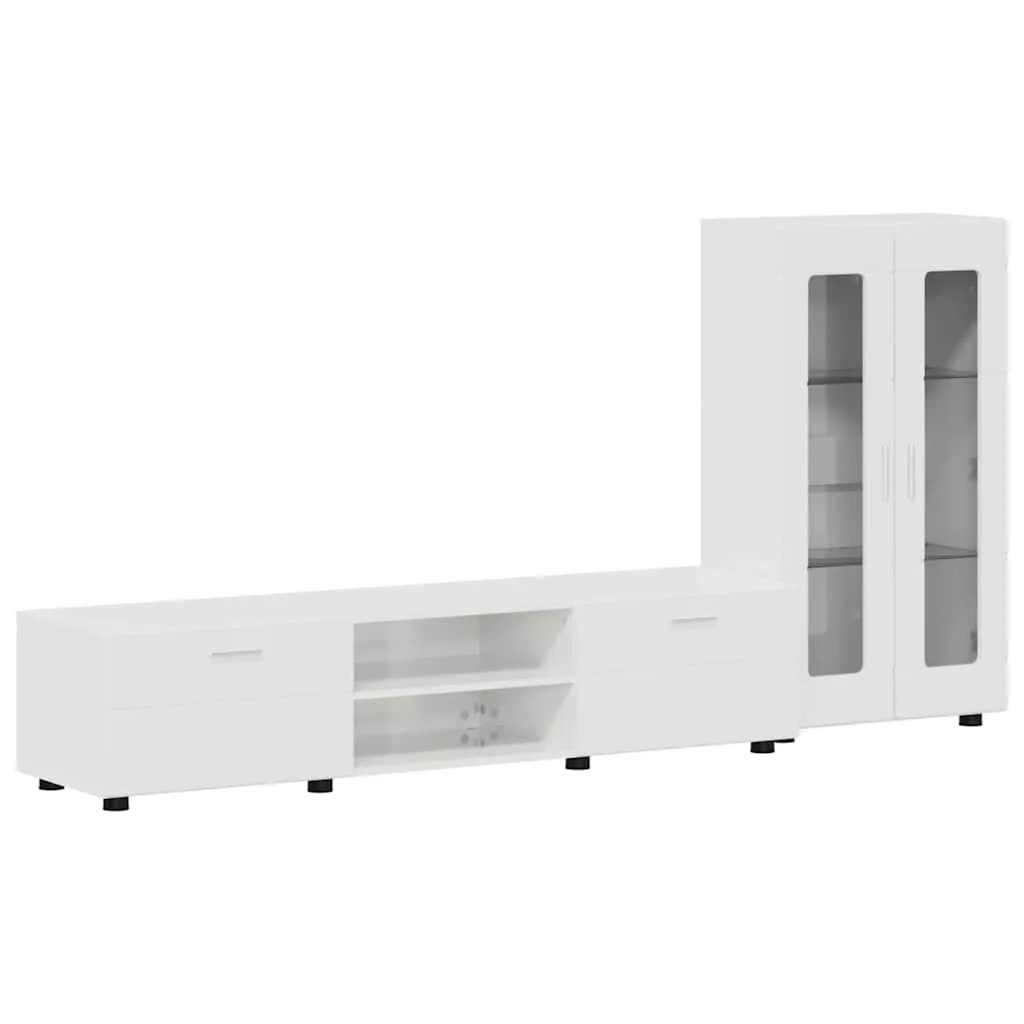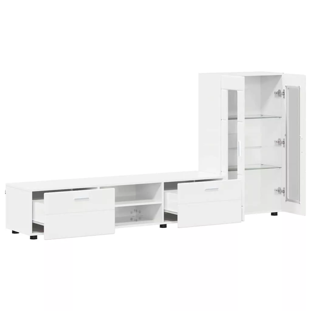 TV szekrény garnitúra fiókkal ajtóval Magas Fényű Fehér Faanyag