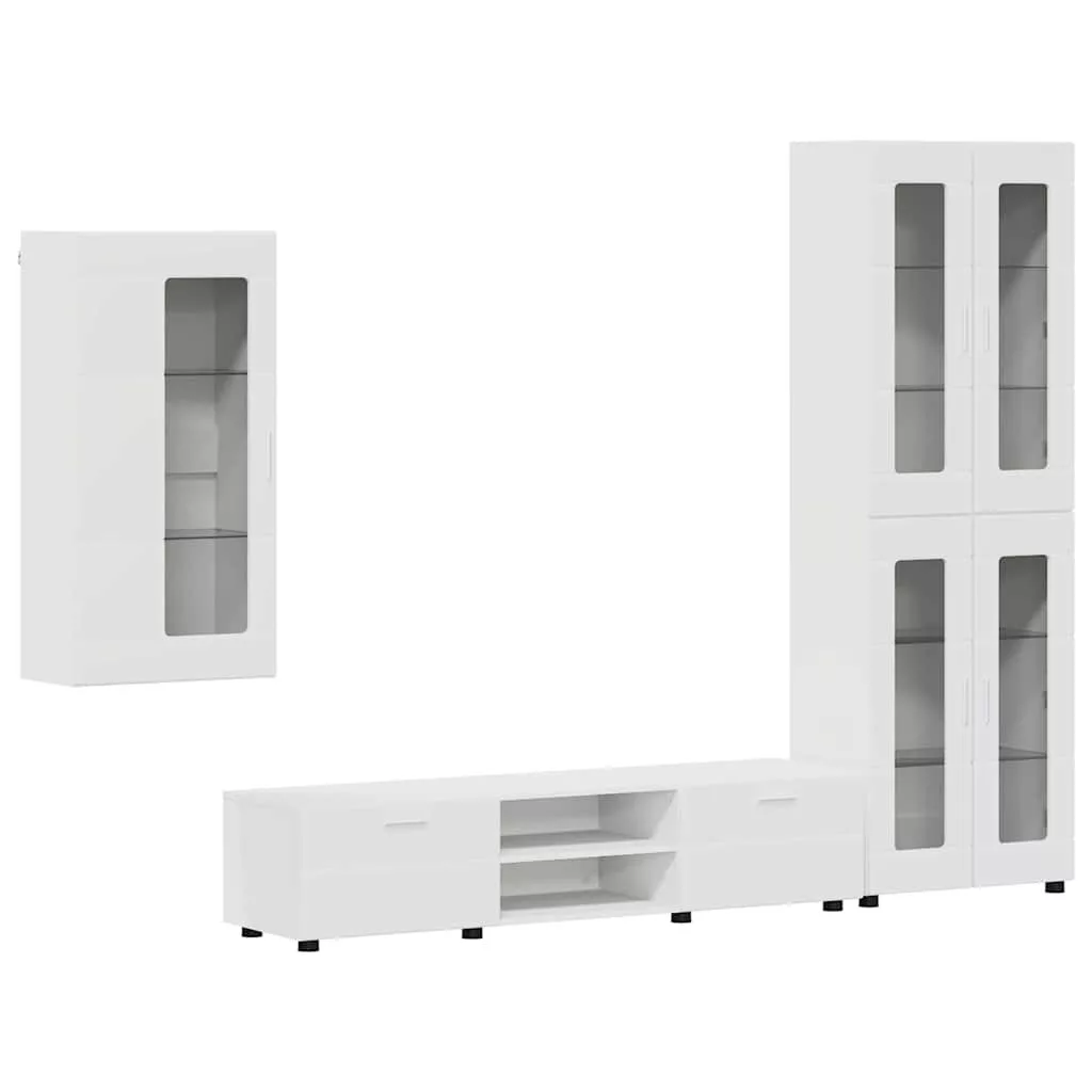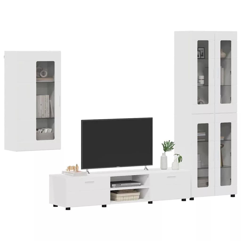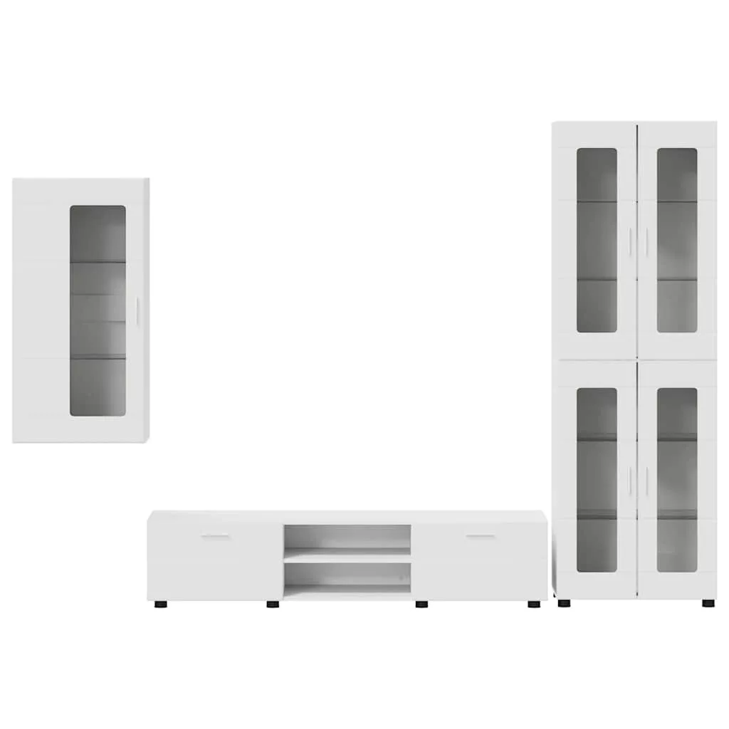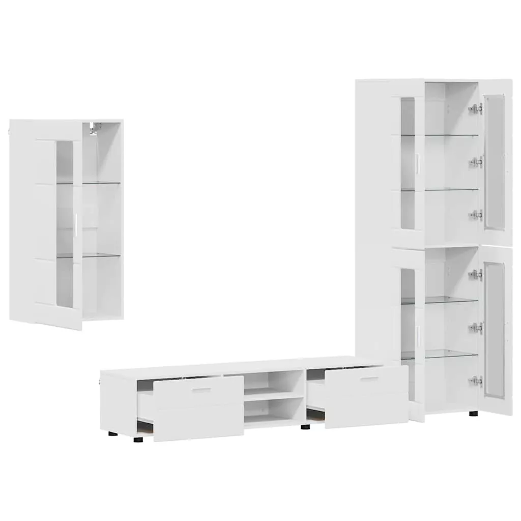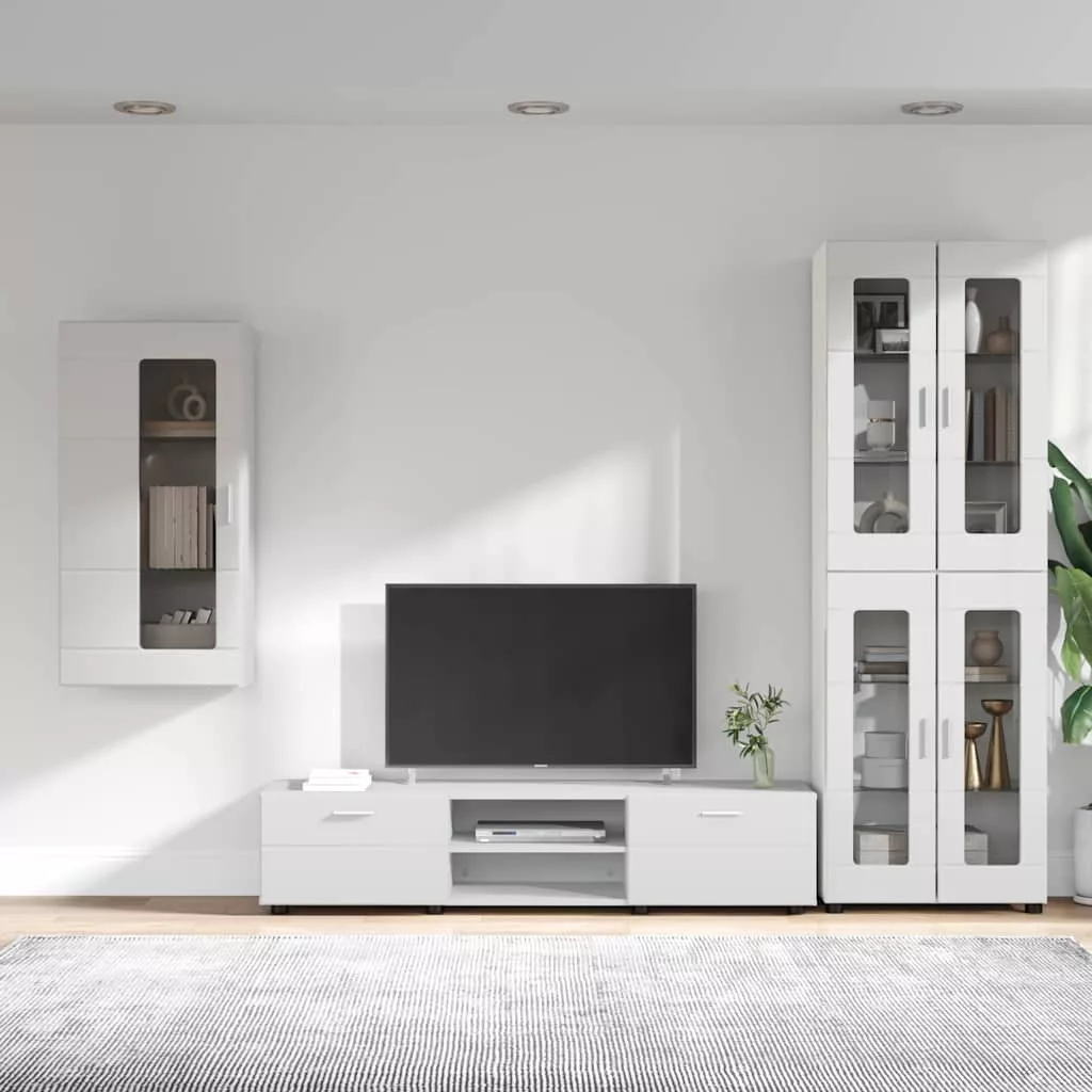 TV szekrény garnitúra fiókkal polcokkal tárolóval Fehér Faanyag