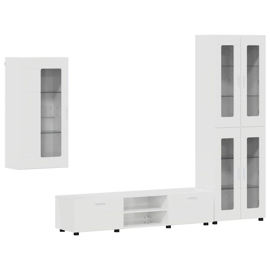 TV szekrény garnitúra fiókkal ajtóval Magas Fényű Fehér Faanyag