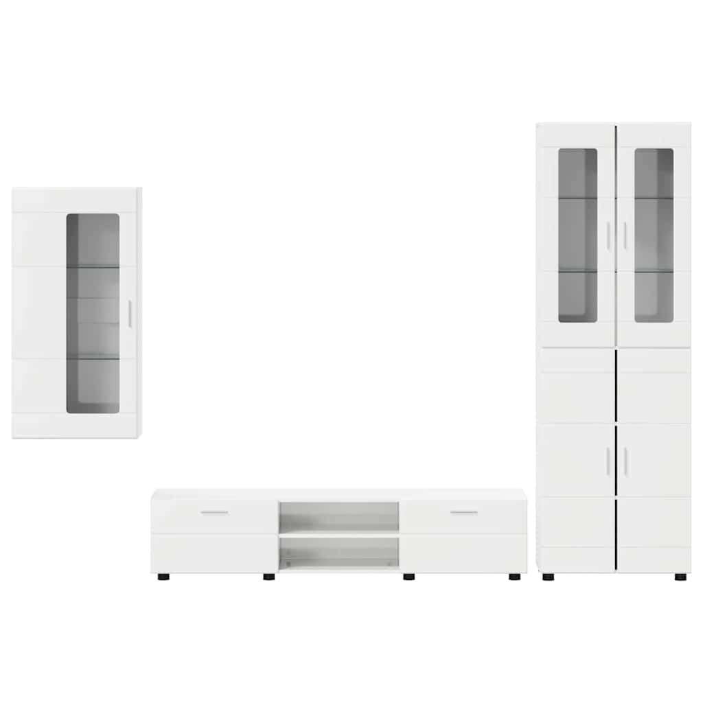 TV szekrény garnitúra fiókkal ajtóval Magas Fényű Fehér Faanyag