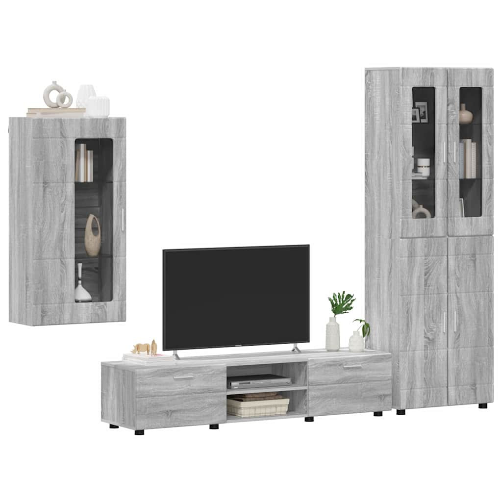 TV szekrény garnitúra fiókkal polcokkal Szürke Sonoma Faanyag