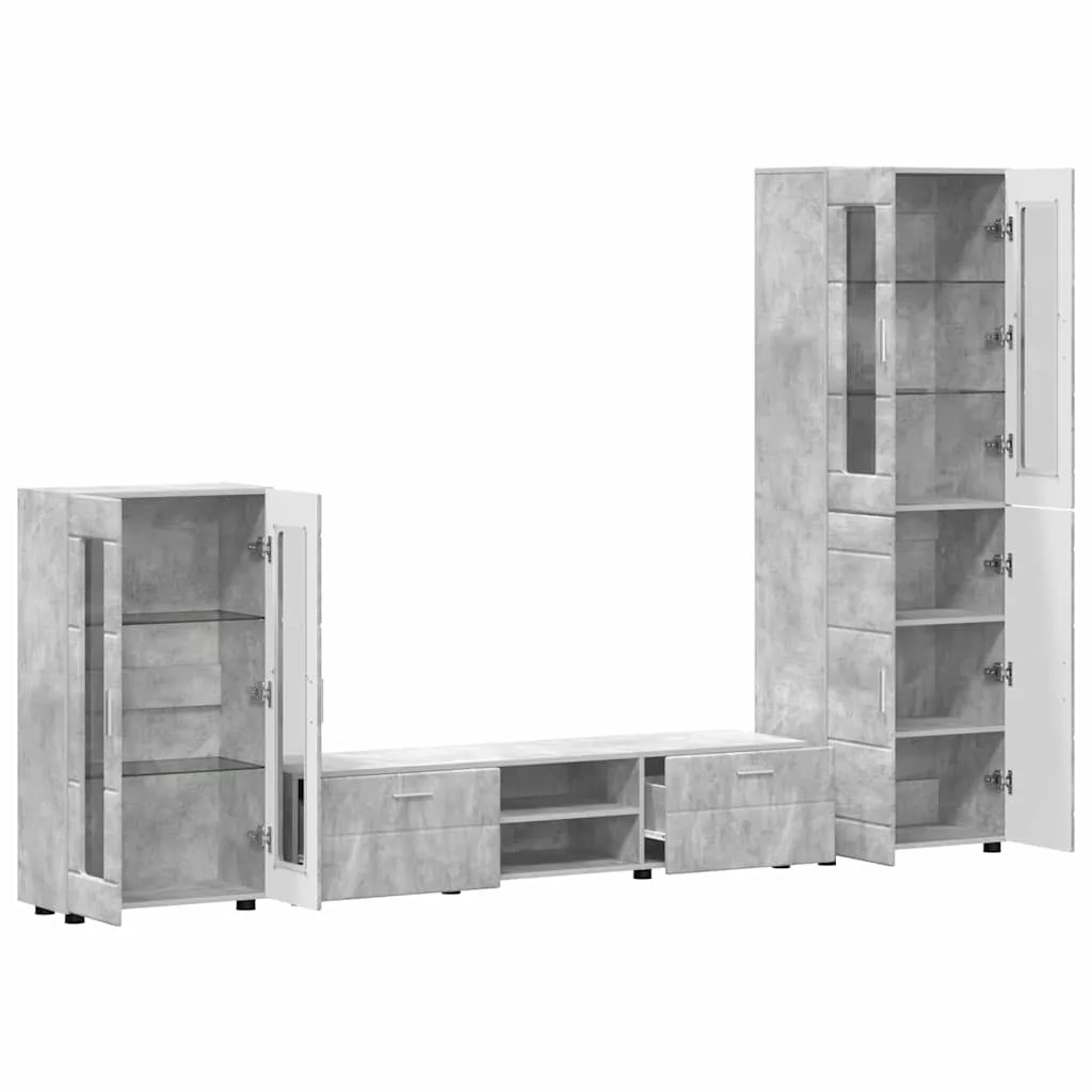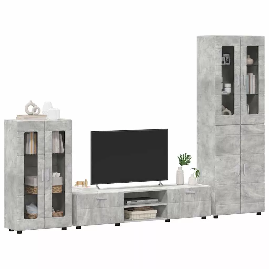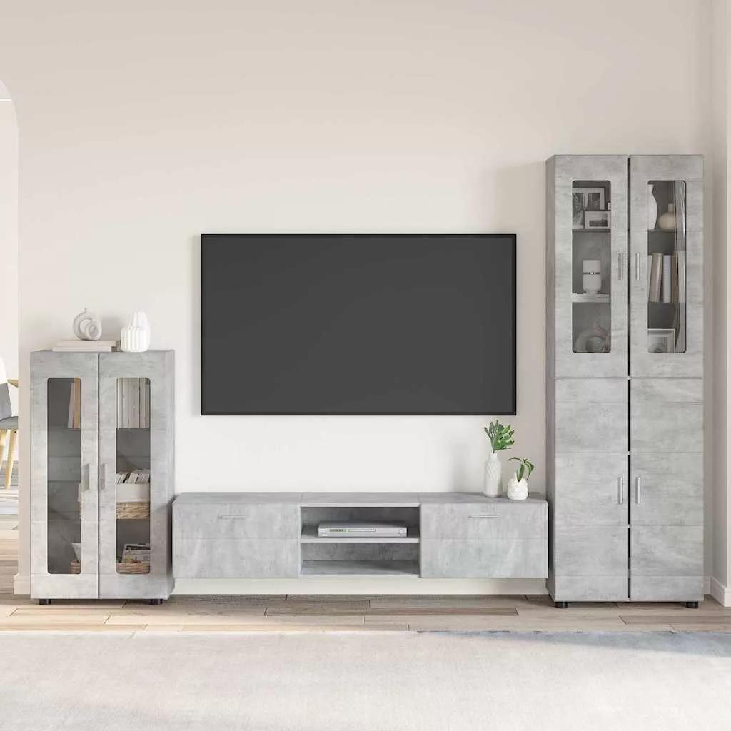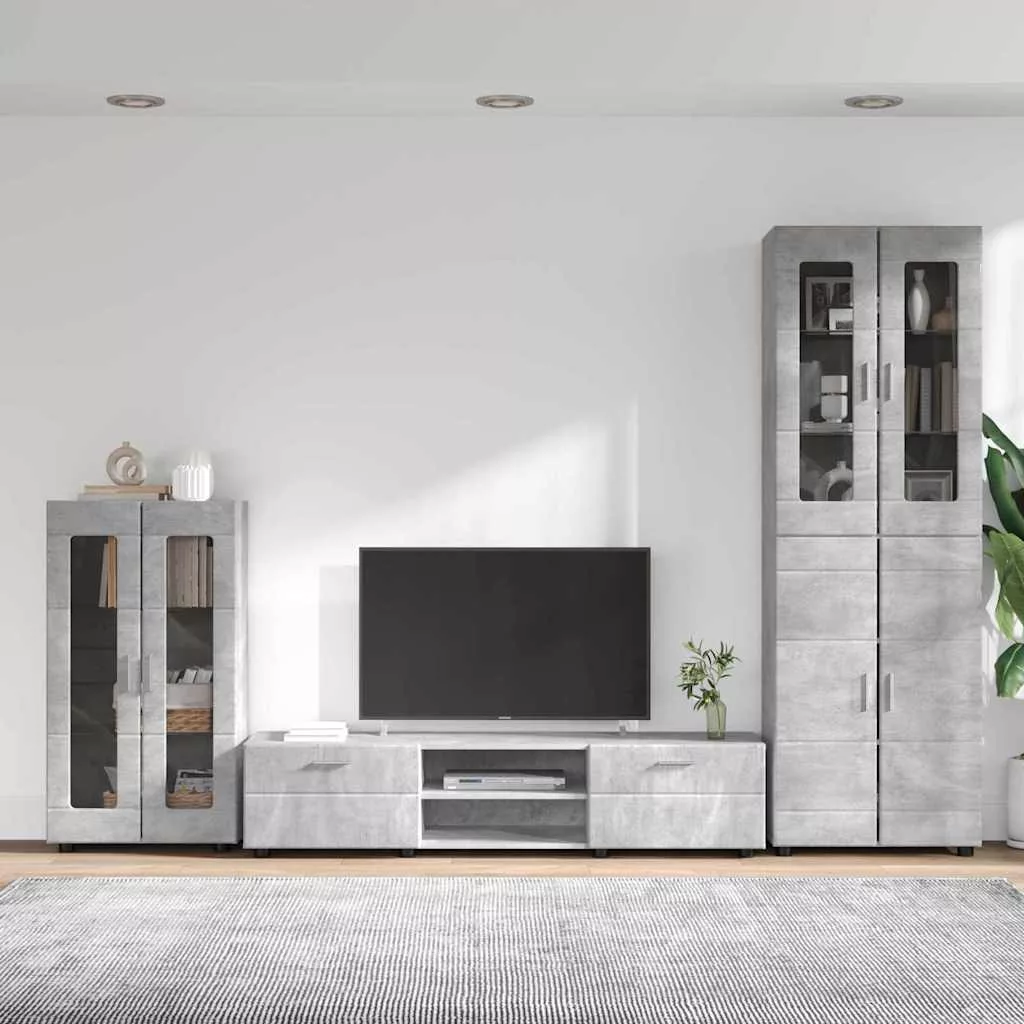 TV szekrény garnitúra fiókkal polcokkal Beton Szürke Faanyag