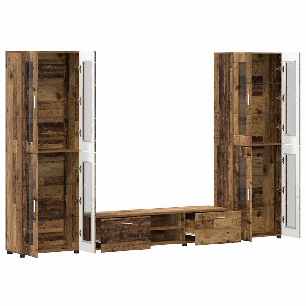 TV szekrény garnitúra fiókkal polcokkal ajtóval Öreg fa Faanyag