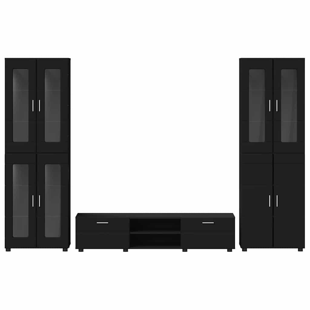 TV szekrény garnitúra fiókkal polcokkal ajtóval Fekete Faanyag