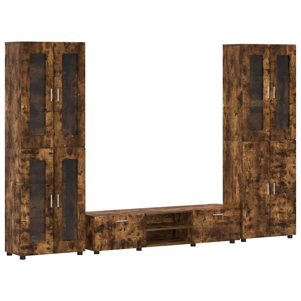 TV szekrény garnitúra fiókkal polcokkal Füstölt tölgy Faanyag