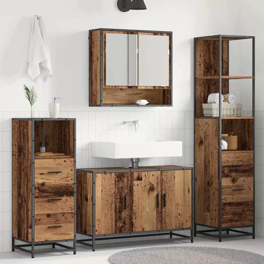 Fürdőszoba bútor szett fiókkal polcokkal 4 pcs Öreg fa Faanyag