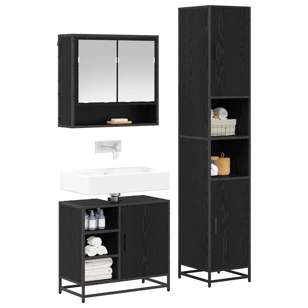 Fürdőszoba bútor szett polcokkal 3 pcs Fekete tölgy Faanyag