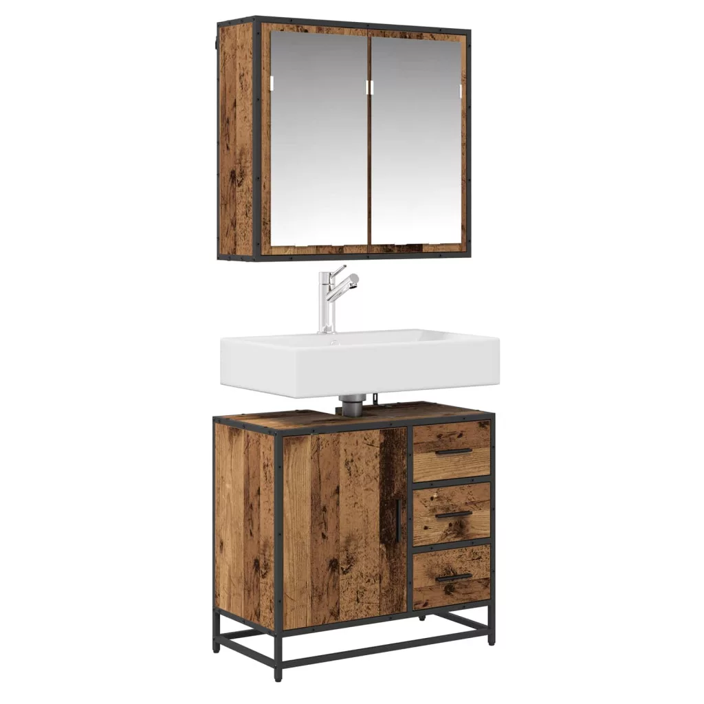 Fürdőszoba bútor szett polcokkal ajtóval 2 pcs Öreg fa Faanyag