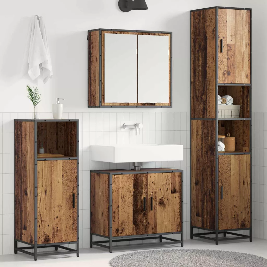 Fürdőszoba bútor szett polcokkal ajtóval 3 pcs Öreg fa Faanyag