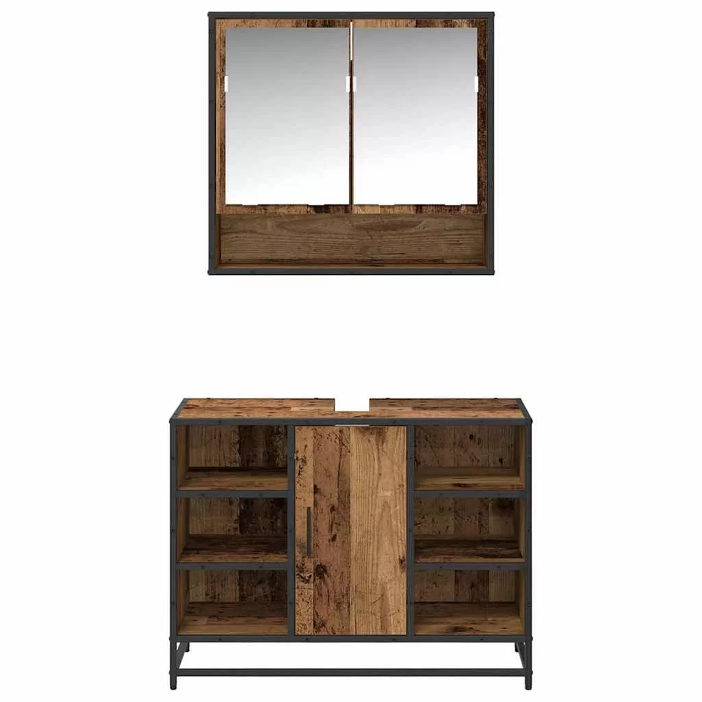 Fürdőszoba bútor szett polcokkal ajtóval 2 pcs Öreg fa Faanyag