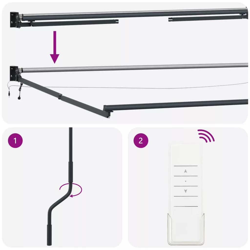 Ez az Elektromos Behúzható Napellenző egy menő és elegáns megoldás a kültéri terek árnyékolására, mutatósan és praktikus módon. A modern dizájnja lehetővé teszi, hogy stílusosan bővítsd a kültéri élettered, miközben megvédi a rossz időtől. Letisztult vonalai és figyelemfelkeltő megjelenése miatt tökéletes választás teraszokra, pavilonokra vagy kertekbe, hogy még jobban élvezd a szabadban töltött időt. Jó időjárásálló szövet: Ez a poliészter napellenző PU bevonattal véd a különböző időjárásoktól, garantálva a hosszú távú használatot. Az anyag segít visszatartani a vizet, csökkenti a hőt és véd a napsütés ellen, így a kültéri terület kényelmes és vonzó marad, még a legforróbb napokon is. Stabil konstrukció: A porszórt acél és alumínium anyag kombinációja masszív keretet ad, ami antikorróziós, tehát hosszú távon bírja az időjárási viszontagságokat. Az acél ereje és az alumínium könnyedsége tökéletes egyensúlyt teremt a tartósság és a kényelem között. Kétféle működési mód: Kiválóan alkalmazkodik a felhasználók igényeihez: motoros automatikus kinyitásra és behúzásra, valamint manuális karral is használható. Ez a rugalmasság széleskörű lehetőségeket ad. Egyszerű falra szerelhető kialakítás: A falra szerelés egy kellemesen praktikus megoldás, ami a tér kihasználhatóságát növeli anélkül, hogy a teljesítmény rovására menne. Tökéletesen illeszkedik bármilyen építészeti stílushoz. Összeszerelés szükséges: Kiszerelve kapsz egy Automatikus Behúzható Napellenzőt, az összeszerelés könnyű a mellékelt rögzítő tartozékokkal, alap szerszámokkal pedig gyorsan beállítható.