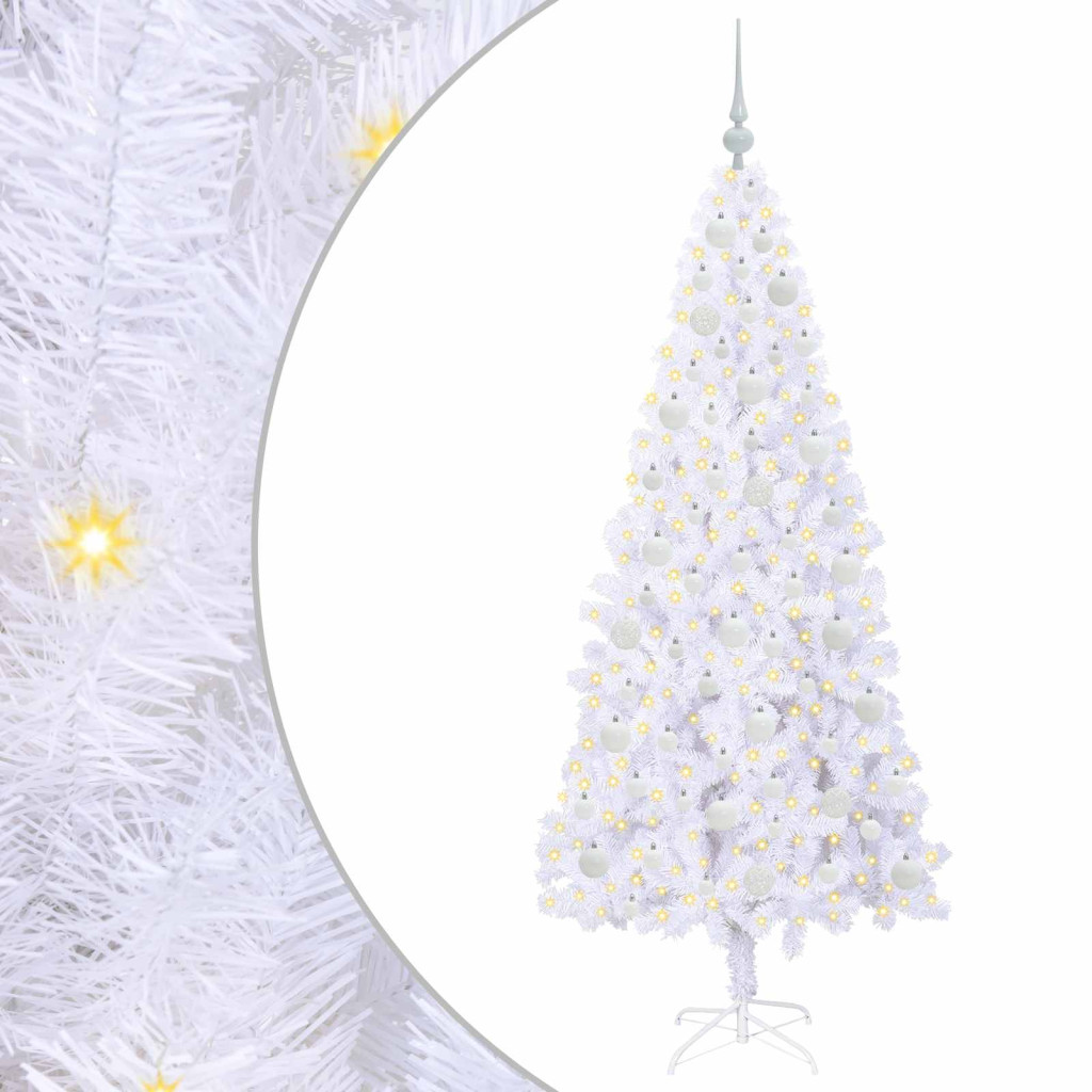 Mű karácsonyfa 300 LED-del állvánnyal Fehér 180 cm PVC és Acél