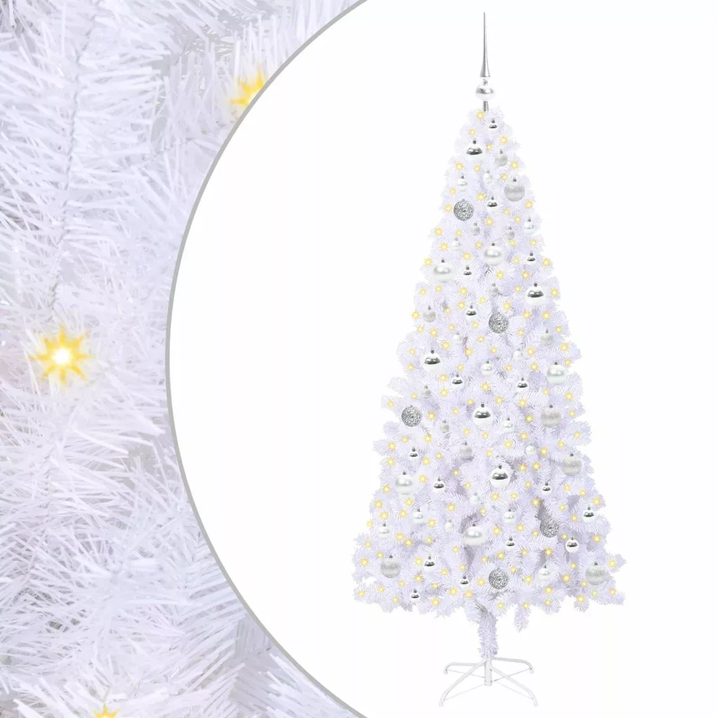 Mű karácsonyfa 300 LED-del állvánnyal Fehér 180 cm PVC és Acél