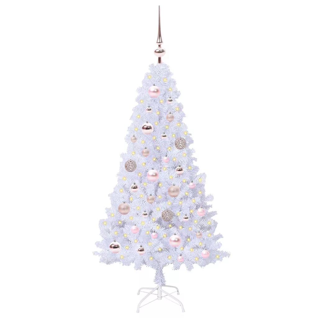 Mű karácsonyfa 150 LED-del állvánnyal Fehér 120 cm PVC és Acél