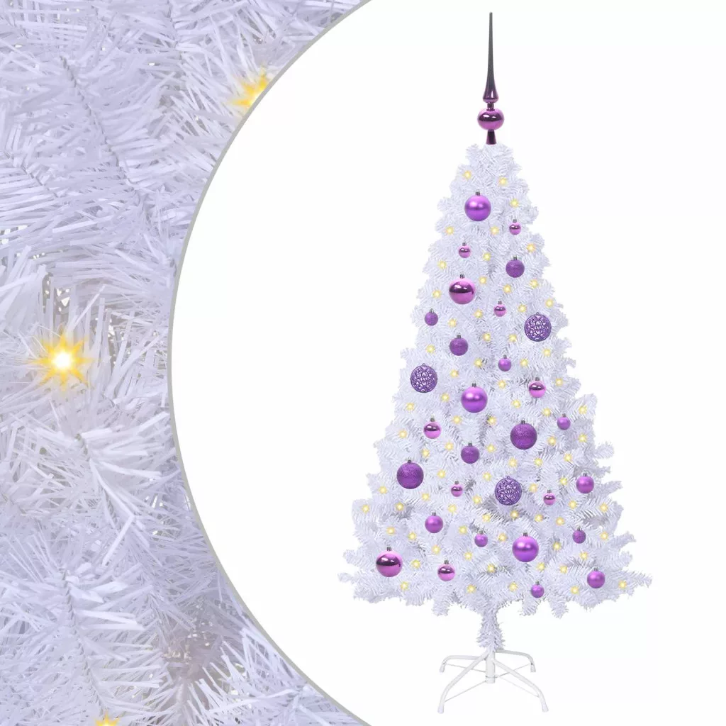 Mű karácsonyfa 150 LED-del állvánnyal Fehér 120 cm PVC és Acél