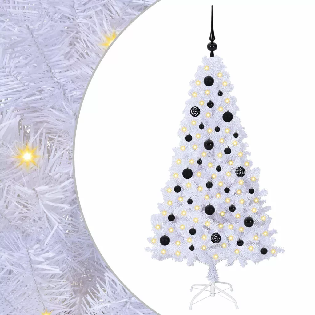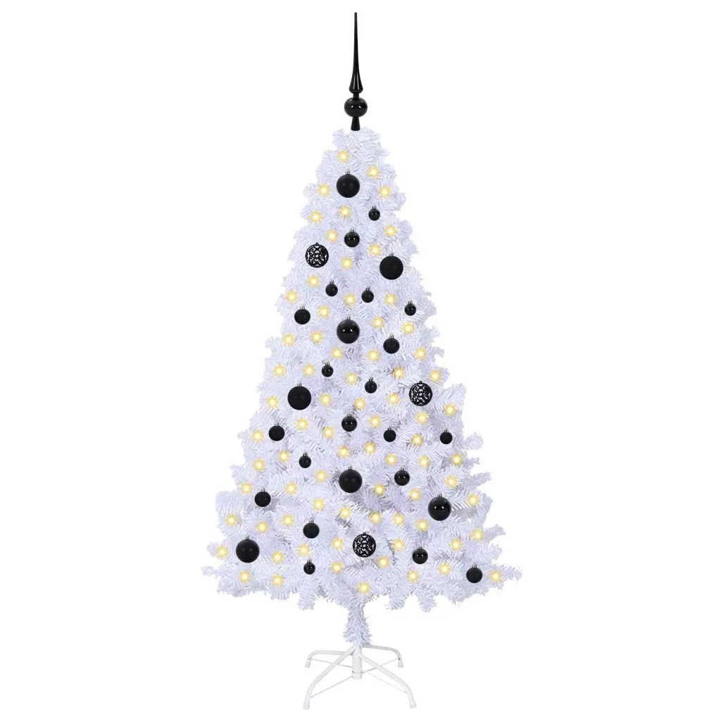 Mű karácsonyfa 150 LED-del állvánnyal Fehér 150 cm PVC és Acél