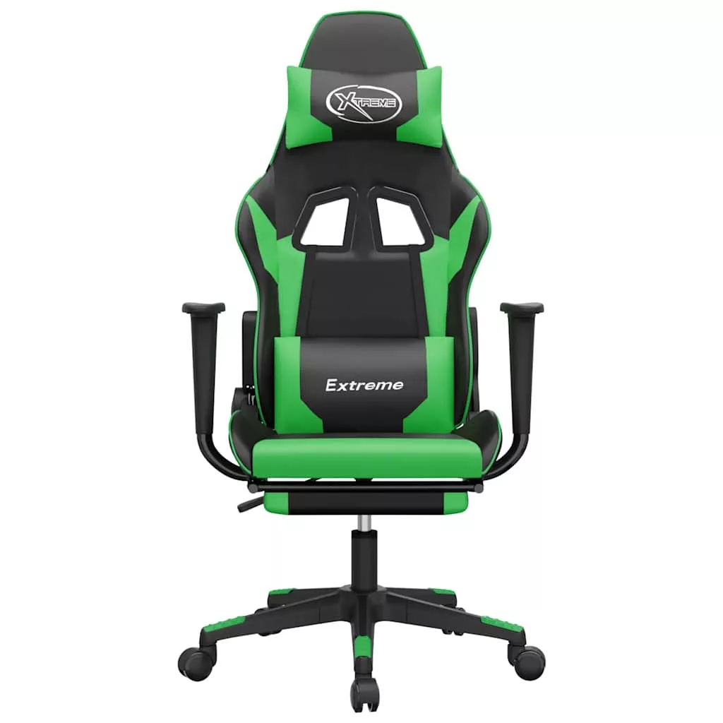 fekete és zöld műbőr masszázsjátékszék lábtartóval