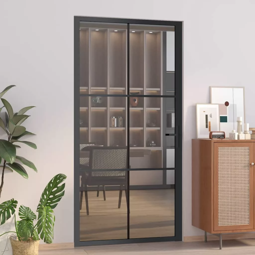 Teremtsen elegáns átmenetet két helyiség között ezzel a beltéri ajtóval! Erős anyag: Intelligens szerkezetének köszönhetően az edzett üveg erősebb és tartósabb, mint bármely más üveg. Az edzett üveg ellenáll a nagy ütéseknek, karcolásoknak stb.Stabil váz: Az alumínium váz erős szerkezetet és stabilitást biztosít.Elengedő magánszféra: Az ajtópanel sötét üvegből készült, amely nagymértékű magánszférát nyújt otthonában és irodájában.Modern dizájn: A függőleges díszítővonalas nyomattal ellátott üvegajtó modern stílust kölcsönöz lakberendezésének. A modern kialakítás letisztult vonalakkal, minimalista megjelenéssel és természetes fénnyel járul hozzá környezetéhez. Megjegyzés:Ez a beltéri ajtó 35-50 mm-es ajtókeretbe szerelhető.Az egyszerű összeszerelés érdekében minden termékhez mellékelünk összeszerelési útmutatót.