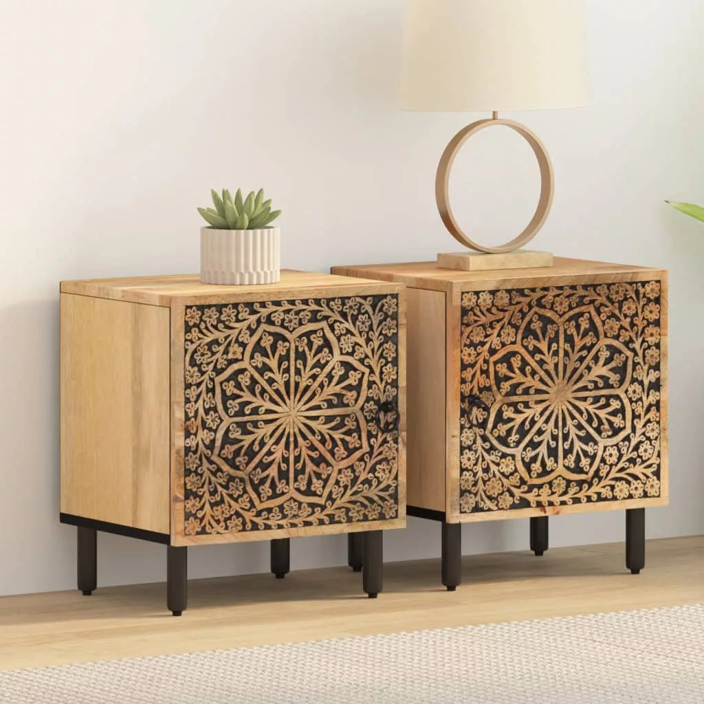 2 db tömör mangófa éjjeliszekrény 40 x 33 x 46 cm
