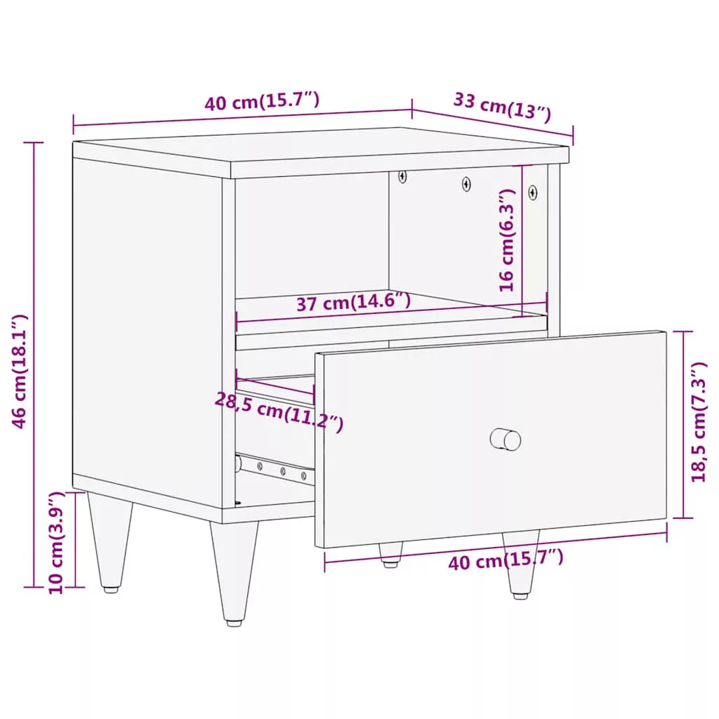 2 db tömör mangófa éjjeliszekrény 40 x 33 x 46 cm