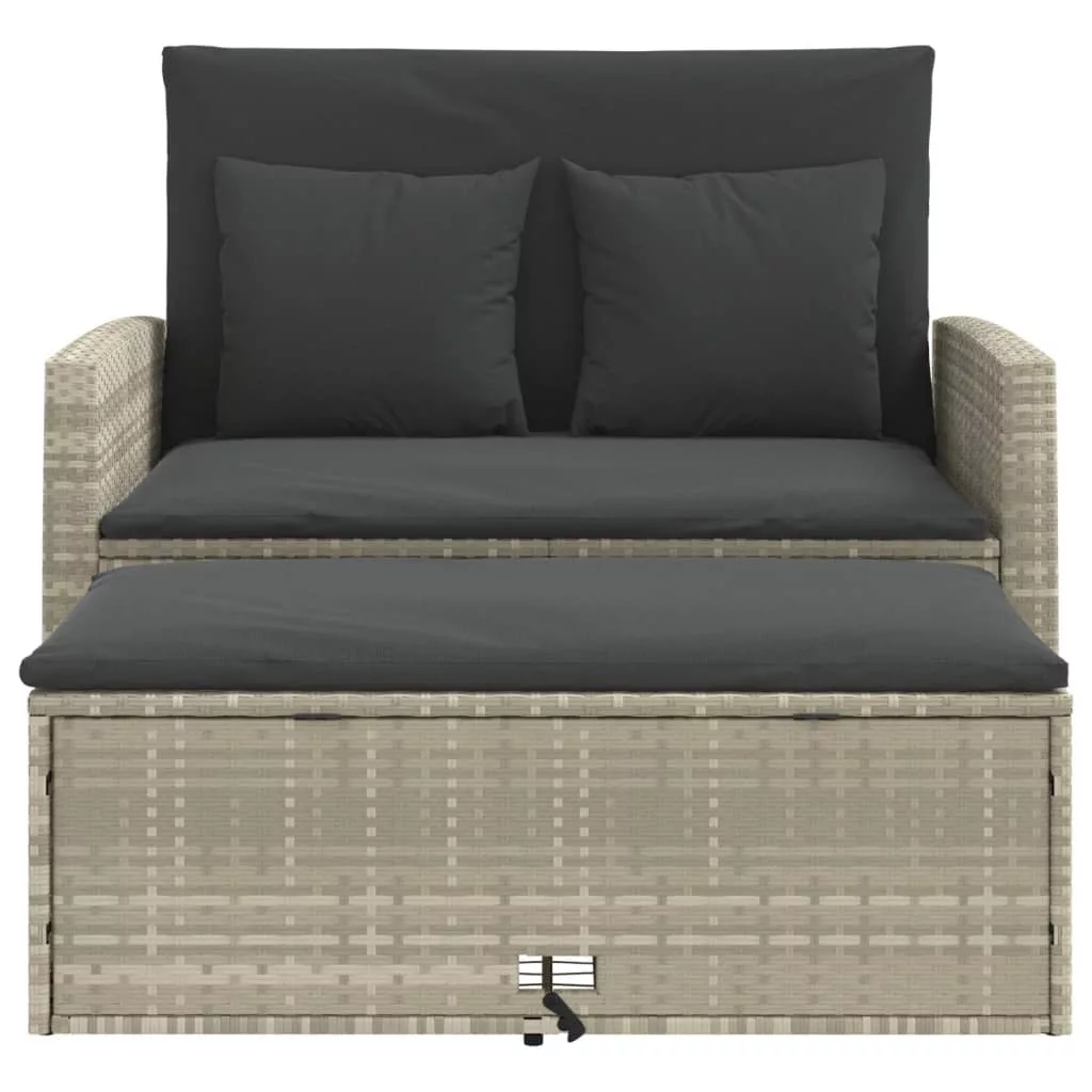 2 személyes világosszürke polyrattan kerti kanapé párnával
